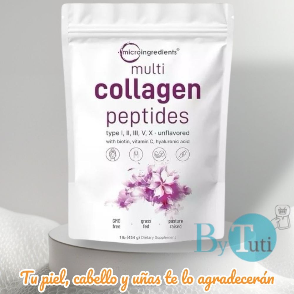 - Complejo 8 en 1 de colágeno hidrolizado de espectro completo (tipos I, II, III, V y X).