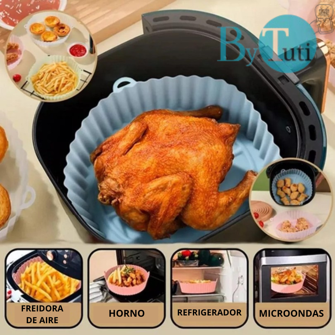 FlexiFry™ lo soluciona todo: su silicona resistente protege el interior , evita residuos pegajosos y mantiene el sabor natural de tus alimentos.